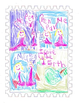 First I am planting a tree with my pen pal. Then we are in line washing our hands. Then we are eating pizza. Then I am holding hands with my pen pal and we are making a big picture of the earth.